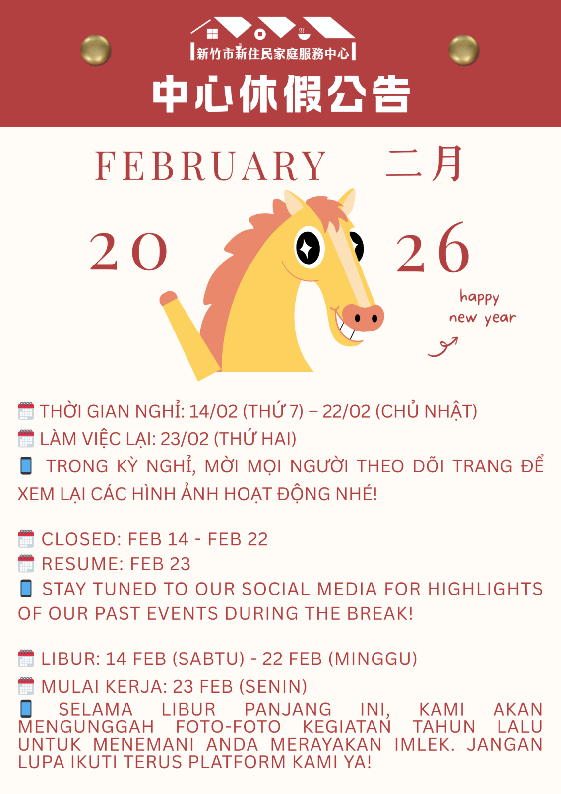 🧧 【2026春節休假公告】 🧧